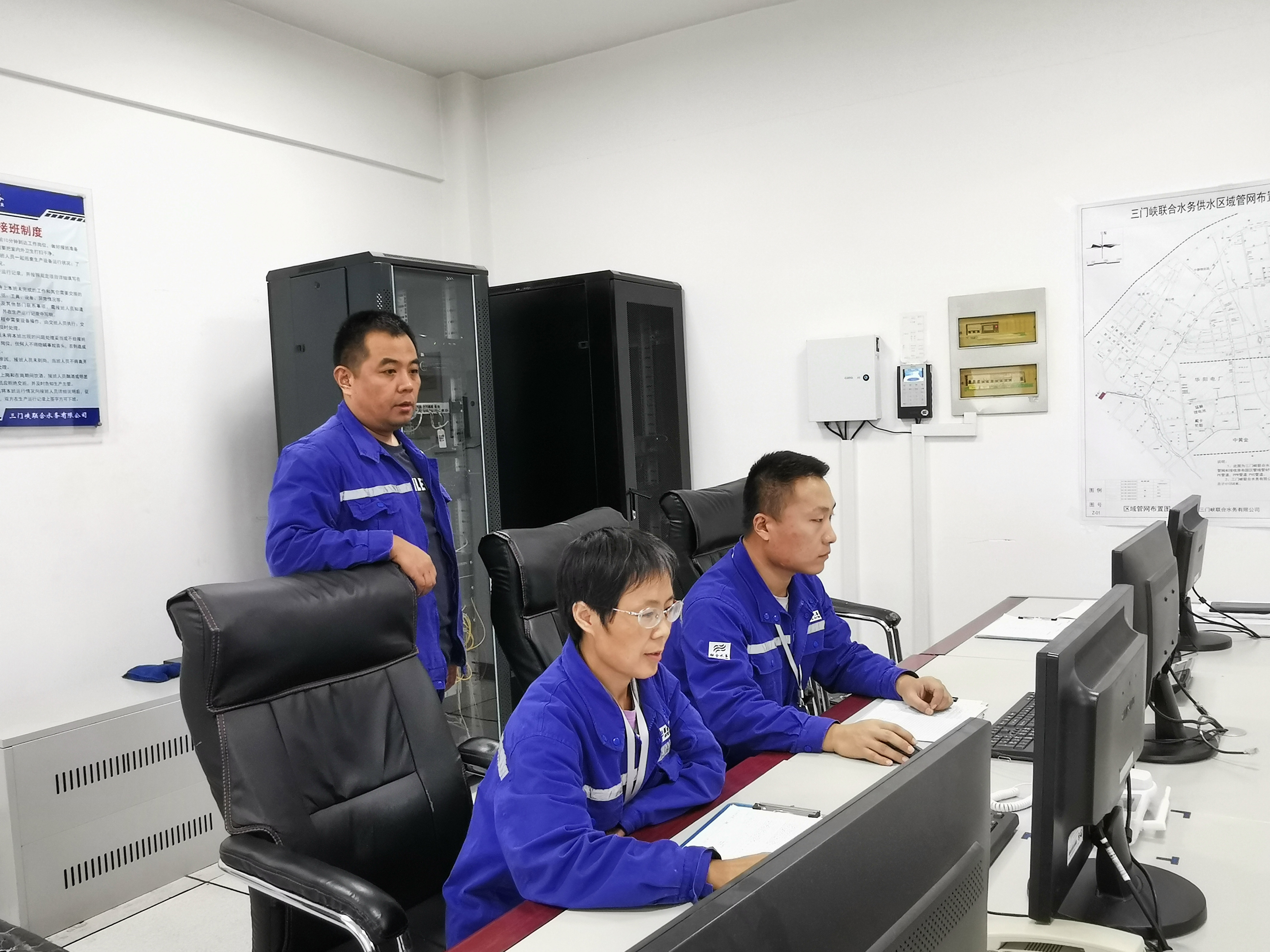 圖:管網(wǎng)部人員巡查水源地情況 制水生產(chǎn)篇: 制水部做為三門峽聯(lián)合水務(wù)供水生產(chǎn)的保障者,肩負(fù)著廠區(qū)制水生產(chǎn)、設(shè)備運(yùn)行、供水調(diào)度和管網(wǎng)運(yùn)行監(jiān)測工作。面對這次疫情突然來襲,制水部運(yùn)行同事們主動駐廠,科學(xué)排班,保障生產(chǎn)。在公司副總經(jīng)理張立建的指導(dǎo)下,制水部加強(qiáng)生產(chǎn)調(diào)度、水質(zhì)監(jiān)測、運(yùn)營維護(hù)、落實(shí)落細(xì)安全措施,加強(qiáng)加藥、加氯、供電、泵房等重要場所的管理。守好安全生產(chǎn)底線,確保城鄉(xiāng)一體化示范區(qū)供水安全。