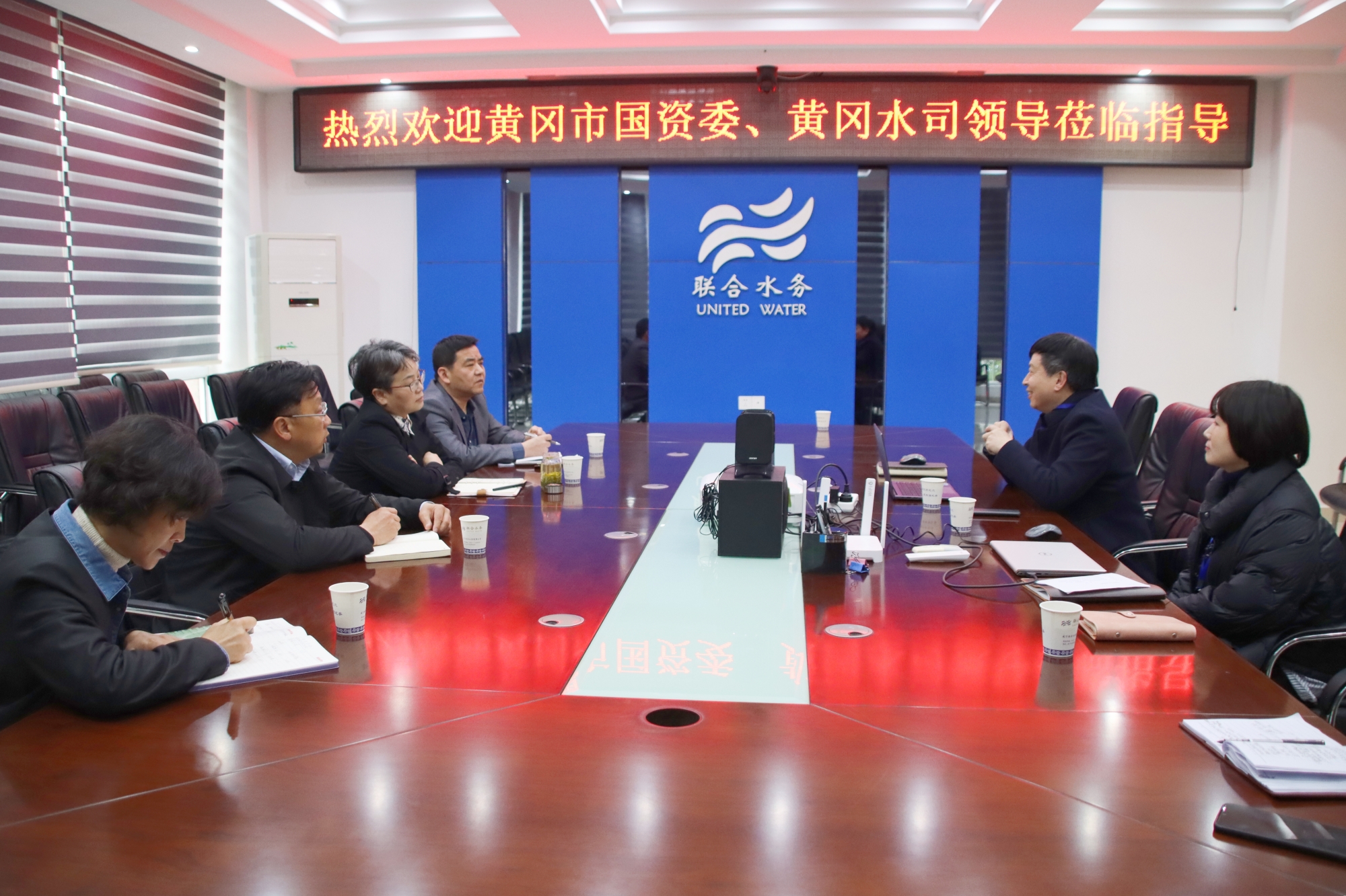 3月17日,黃岡市政府國資委副主任趙鴻雁、黃岡市自來水有限公司紀(jì)委書記王光輝等領(lǐng)導(dǎo)蒞臨咸寧聯(lián)合水務(wù)有限公司進(jìn)行考察交流,咸寧聯(lián)合水務(wù)總經(jīng)理毛雄輝全程陪同。