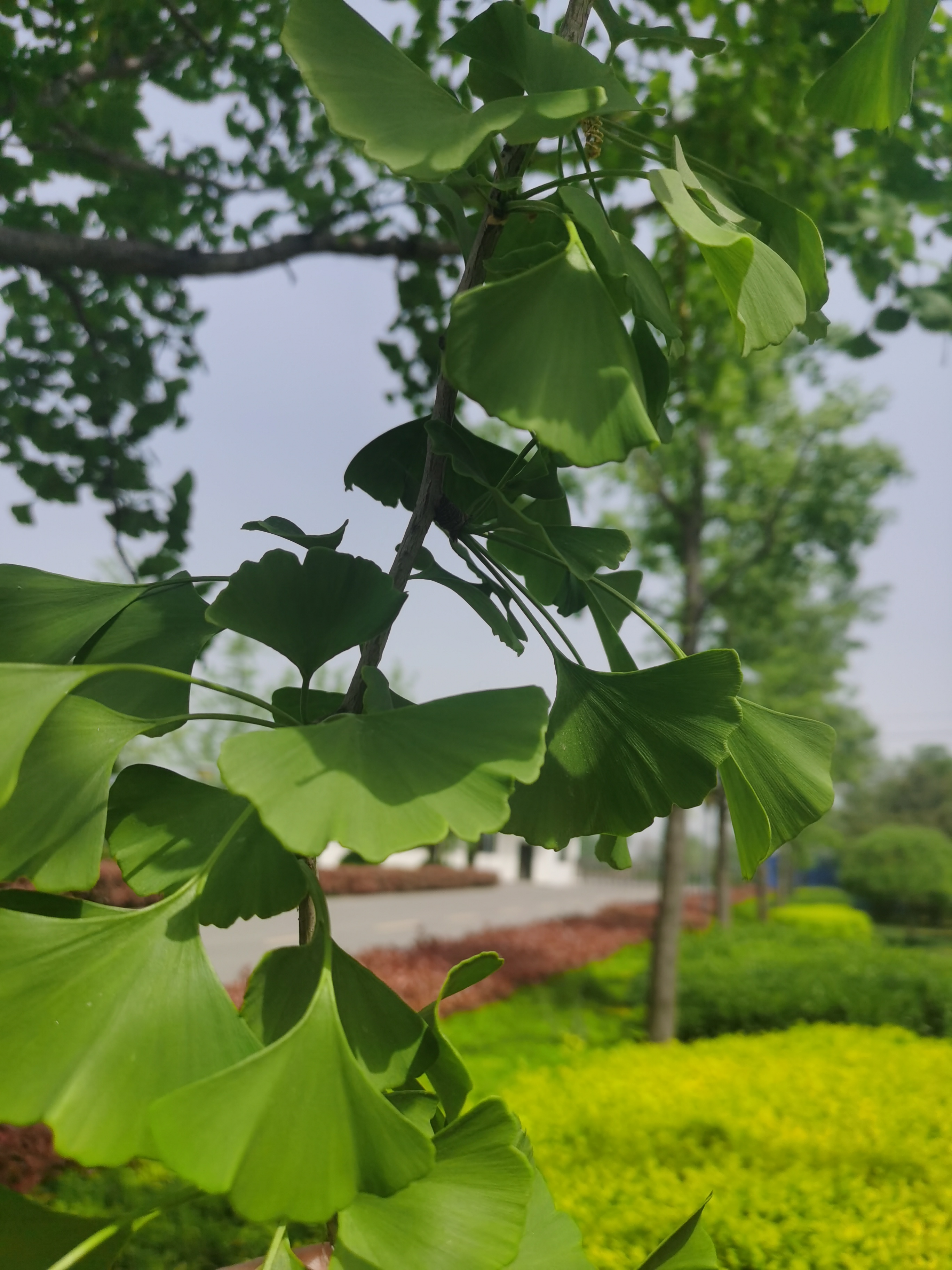 春末夏初,天氣漸熱,百花園里爭(zhēng)奇斗艷的櫻花、桃花、梨花、海棠慢慢謝了幕,晉華園里路旁的銀杏樹已然在不經(jīng)意間長(zhǎng)滿了深綠色的扇形葉片如同一把張開的綠絨大傘,碧綠的銀杏樹與銀灰色的馬路交相輝映,形成獨(dú)特的風(fēng)景。