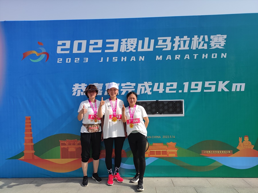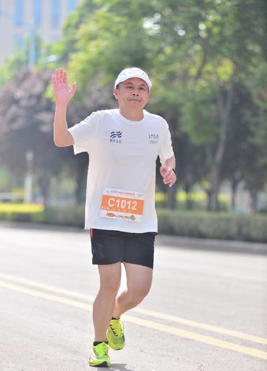 受邀參賽的山西區(qū)域和三門(mén)峽的領(lǐng)導(dǎo)同事們欣然應(yīng)約,組成團(tuán)隊(duì)參加了本次21.0975公里半程馬拉松和5公里歡樂(lè)跑。他們?nèi)橥度,?jiān)持不懈,以運(yùn)動(dòng)健兒的身份在賽道上展現(xiàn)出活力四溢的風(fēng)采,彰顯了當(dāng)代水務(wù)人朝氣蓬勃、拼搏向前的精神面貌。他們不畏困難,克服挑戰(zhàn),頑強(qiáng)地奔跑著,一路上生命與激情交織,呈現(xiàn)出耀眼的光芒。他們完賽并獲得了獎(jiǎng)牌,特別值得一提的是山西區(qū)域總經(jīng)理夏學(xué)春在半程馬拉松中取得了出色的成績(jī),僅用1小時(shí)48分鐘完成比賽。 “跑步不僅讓人身體健康,更使我們內(nèi)心平靜,利用跑步的時(shí)間來(lái)放空自己或者思考問(wèn)題,面對(duì)繁重的工作時(shí),可以更從容面對(duì),在考驗(yàn)選手的體能、心理素質(zhì)的同時(shí)在奔跑中磨煉我們的堅(jiān)毅品格和拼搏精神。”面對(duì)采訪,夏總激動(dòng)地這樣說(shuō)道。