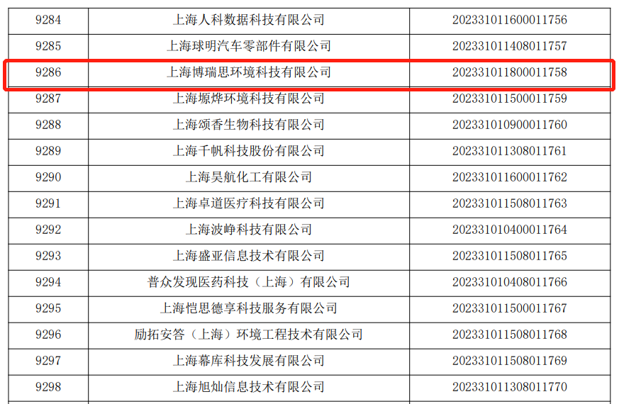 喜報 | 上海博瑞思環(huán)境科技有限公司入庫2023年度第二批科技型中小企業(yè)! | ||