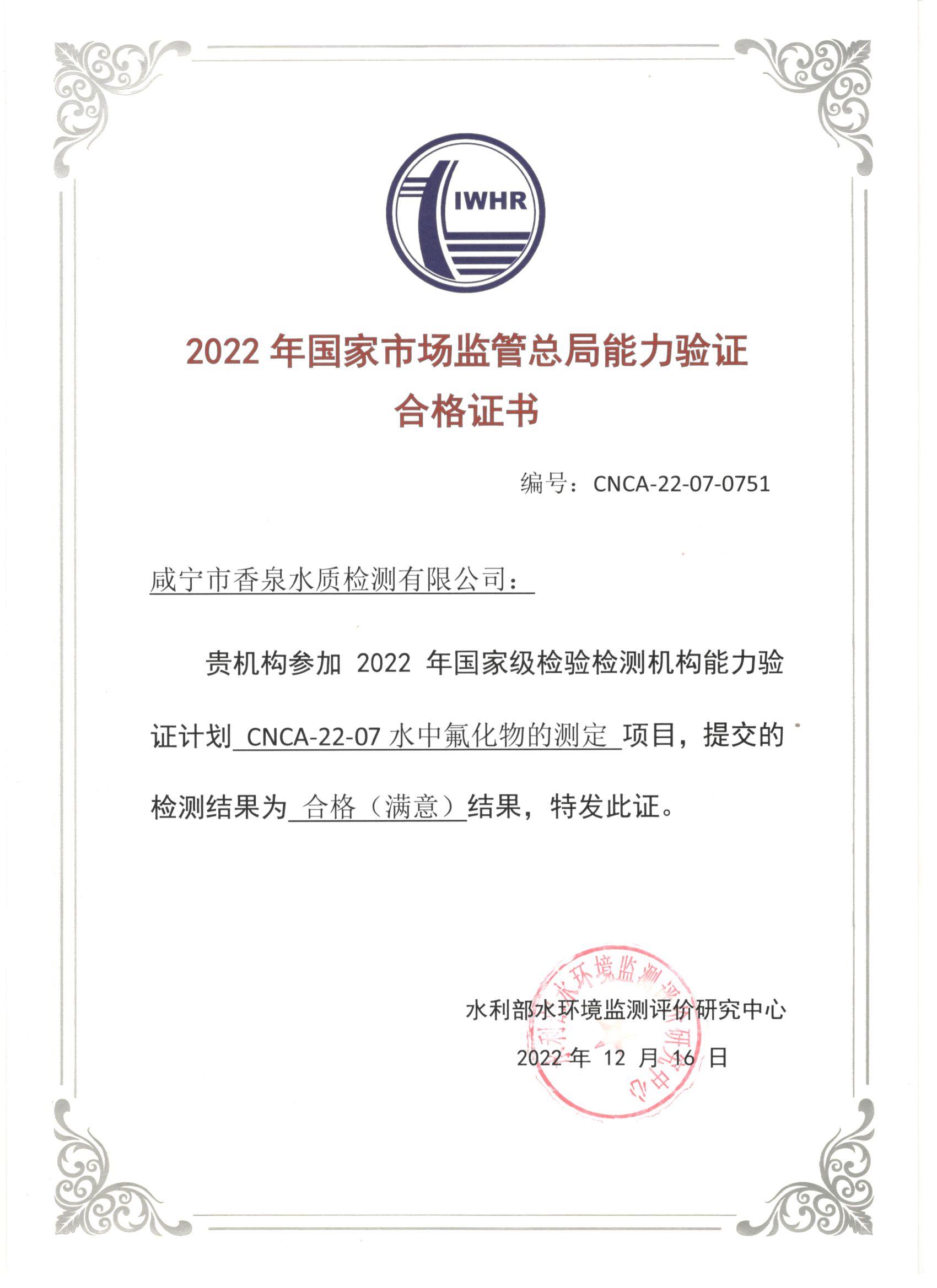 近日,聯(lián)合水務(wù)咸寧市香泉水質(zhì)檢測有限公司暨湖北省城市供水水質(zhì)監(jiān)測網(wǎng)咸寧監(jiān)測站傳來佳績,其參與的國家住建部城市供水水質(zhì)監(jiān)測中心于2022年11月組織開展的《第16次全國城鎮(zhèn)供排水行業(yè)檢驗檢測機構(gòu)質(zhì)量控制考核》活動,全部取得“合格”結(jié)果。