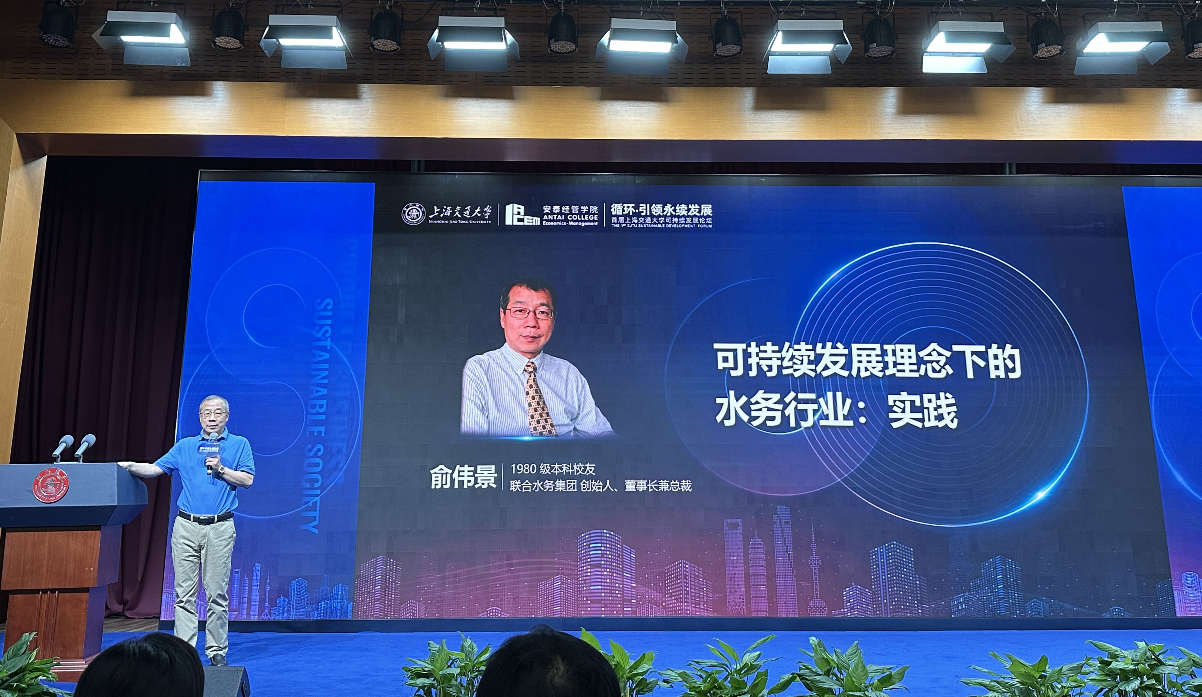 作為企業(yè)界的校友代表,俞偉景作了題為《可持續(xù)發(fā)展理念下的水務(wù)行業(yè):實(shí)踐》的主旨演講。俞偉景從我國水資源基本特征及水務(wù)行業(yè)中的供水、排水、再生水利用等方面介紹了水務(wù)行業(yè)的發(fā)展與現(xiàn)狀,并分享了水務(wù)行業(yè)圍繞可持續(xù)發(fā)展理念在新能源應(yīng)用、資源化利用、綜合治理一體化、智慧水務(wù)等方面的探索。他提及,聯(lián)合水務(wù)作為一家綜合性、全方位的水務(wù)公司,積極踐行可持續(xù)發(fā)展理念,在污水資源化利用、智慧水務(wù)等方面已有豐富的實(shí)踐經(jīng)驗(yàn),并已開始在自有水廠探索與新能源的結(jié)合,實(shí)現(xiàn)節(jié)能降碳的目標(biāo)。如今,公司邁入第二十個年頭,未來也將繼續(xù)開拓創(chuàng)新,創(chuàng)造新機(jī)遇,增添新動力。