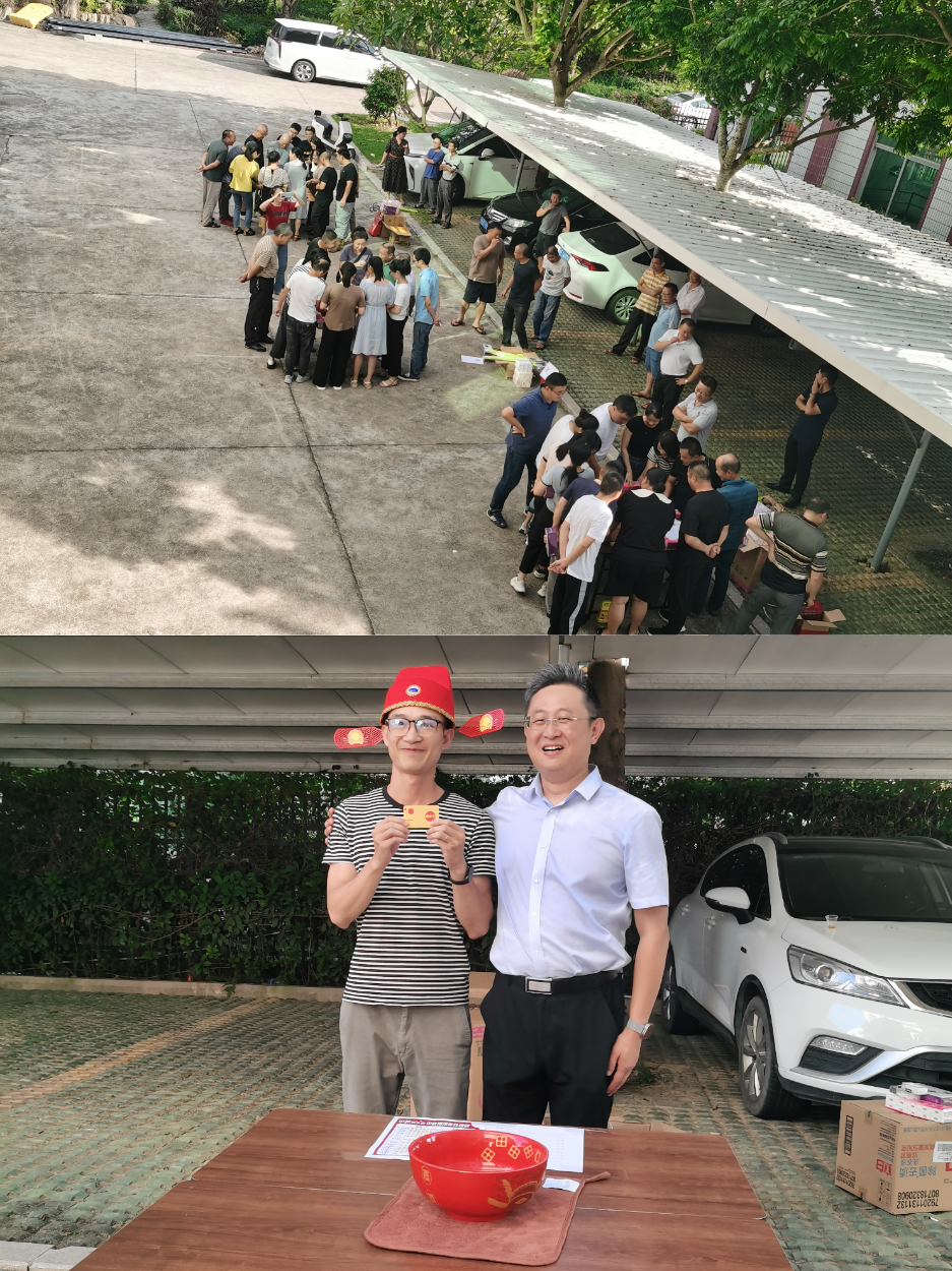 上午,進行的是傳統(tǒng)項目拔河比賽。本次活動共有四支隊伍參加比賽,分別是客服模塊代表隊、生產(chǎn)模塊代表隊、平和水務代表隊、綜合部門代表隊。比賽前,各參賽隊員摩拳擦掌、斗志昂揚。隨著哨聲響起,參賽隊員們緊握長繩,聚焦麻繩中點,齊心協(xié)力、一同發(fā)力,展現(xiàn)出良好的精神風貌。經(jīng)過激烈的角逐,客服模塊代表隊獲得冠軍,生產(chǎn)模塊代表隊獲得亞軍,平和水務代表隊獲得季軍。 下午,進行的是員工期待已久的中秋博餅活動。此次博餅活動分為6個組,參賽的每個人都難以抑制激動的心情,圍在桌子旁,摩拳擦掌,紛紛躍躍欲試,隨著各組骰子叮當落下的清脆響聲,大家時而注目期盼,時而歡呼感嘆。幾番激烈角逐后,桌上的禮品悉數(shù)被大家收入囊中,各桌的狀元也逐個出爐。最后,各組狀元進行狀元王中王角逐,博出了狀元王中王。