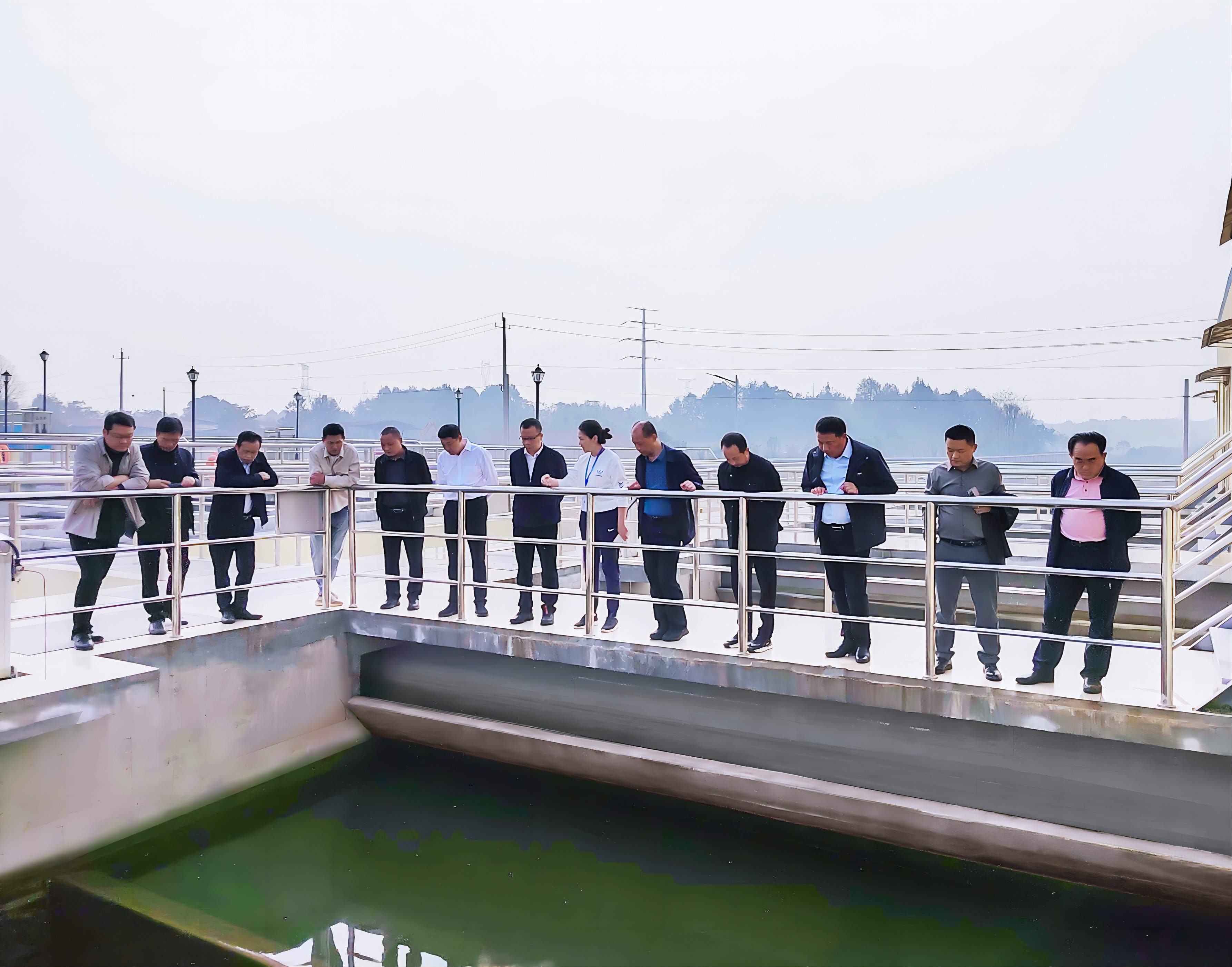 當(dāng)天上午,考察團(tuán)在范總的陪同下實(shí)地查看了橫溝水廠配水混合井、絮凝沉淀池、V型濾池,詳細(xì)了解了水處理工藝和流程,聽取了關(guān)于橫溝水廠建設(shè)及運(yùn)營情況的介紹。李副市長對橫溝水廠的供水設(shè)施、供水保障能力,以及為橫溝橋鎮(zhèn)城鄉(xiāng)供水一體化建設(shè)所發(fā)揮的作用、帶來的社會效益給予了高度評價。