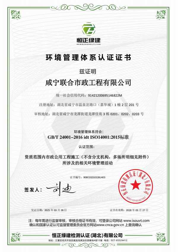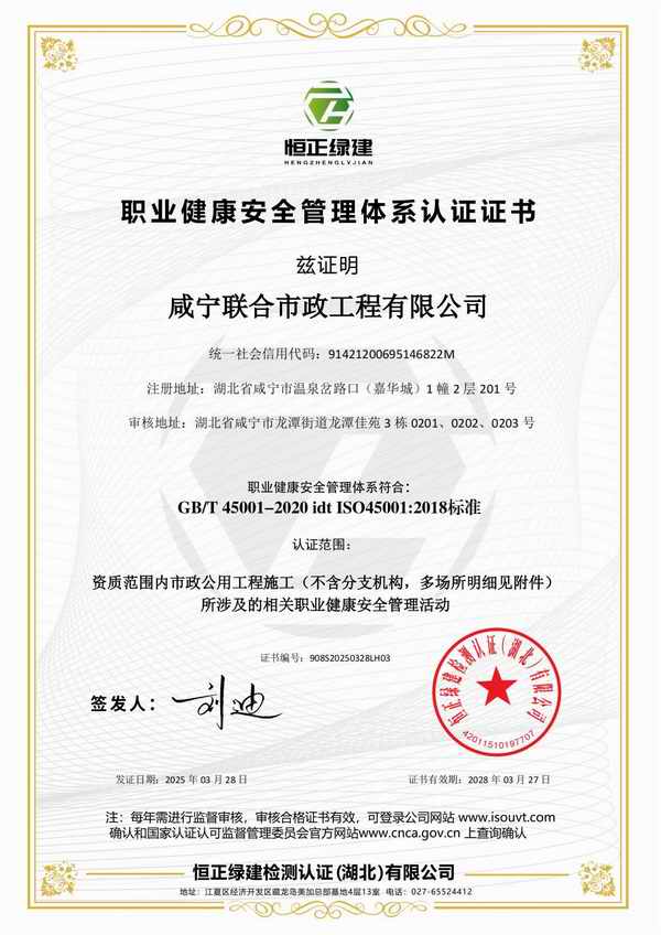 未來,咸寧聯(lián)合市政工程有限公司將繼續(xù)堅持高標(biāo)準(zhǔn)、嚴(yán)要求,不斷優(yōu)化和完善三大體系,提升公司的服務(wù)質(zhì)量和環(huán)境管理水平,保障員工的職業(yè)健康安全。同時,公司也將積極履行社會責(zé)任,為咸寧市的市政建設(shè)和城市發(fā)展做出更大的貢獻(xiàn)。