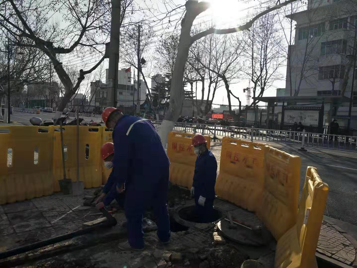 公司管網(wǎng)部立即成立了臨時安裝小組,由部門經(jīng)理帶隊,抽調(diào)精兵強(qiáng)將趕到現(xiàn)場勘察,設(shè)計施工方案,確定施工所需管材和配件并當(dāng)即調(diào)配。施工現(xiàn)場厚厚的水泥路面為工程安裝帶來的不便,為了盡快完成安裝,公司外請了專業(yè)切割破碎隊負(fù)責(zé)道路切割,這樣雖然大大增加了施工成本,卻可以節(jié)省很多時間。施工現(xiàn)場熱火朝天,埋線、熱熔、對接、鋪設(shè)等各項工作有條不紊的進(jìn)行著。施工人員帶著口罩,有些悶,不一會大家就面紅耳赤、汗流浹背,身在疫情防控隔離點,是離病毒危險最近的地方,可是大家絲毫顧不上個人安危,忘我地工作著,終于在下午17時完成了管道安裝,順利通水,從接到接水通知到通水僅用了3個小時,體現(xiàn)了聯(lián)合水務(wù)銀控供水人超強(qiáng)的組織能力和工作效率。