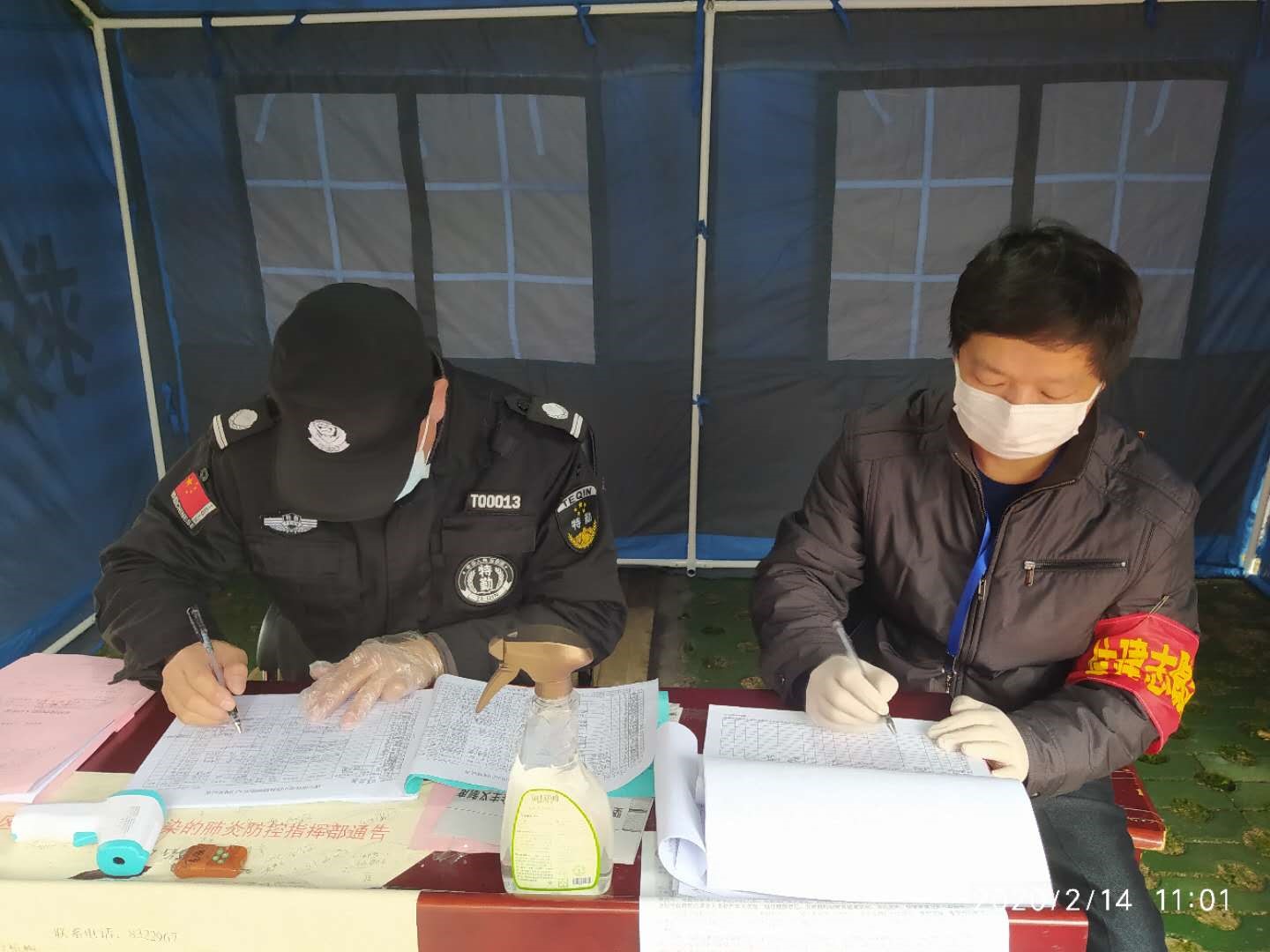 圖2:志愿者吳高斌進(jìn)行出入人員登記