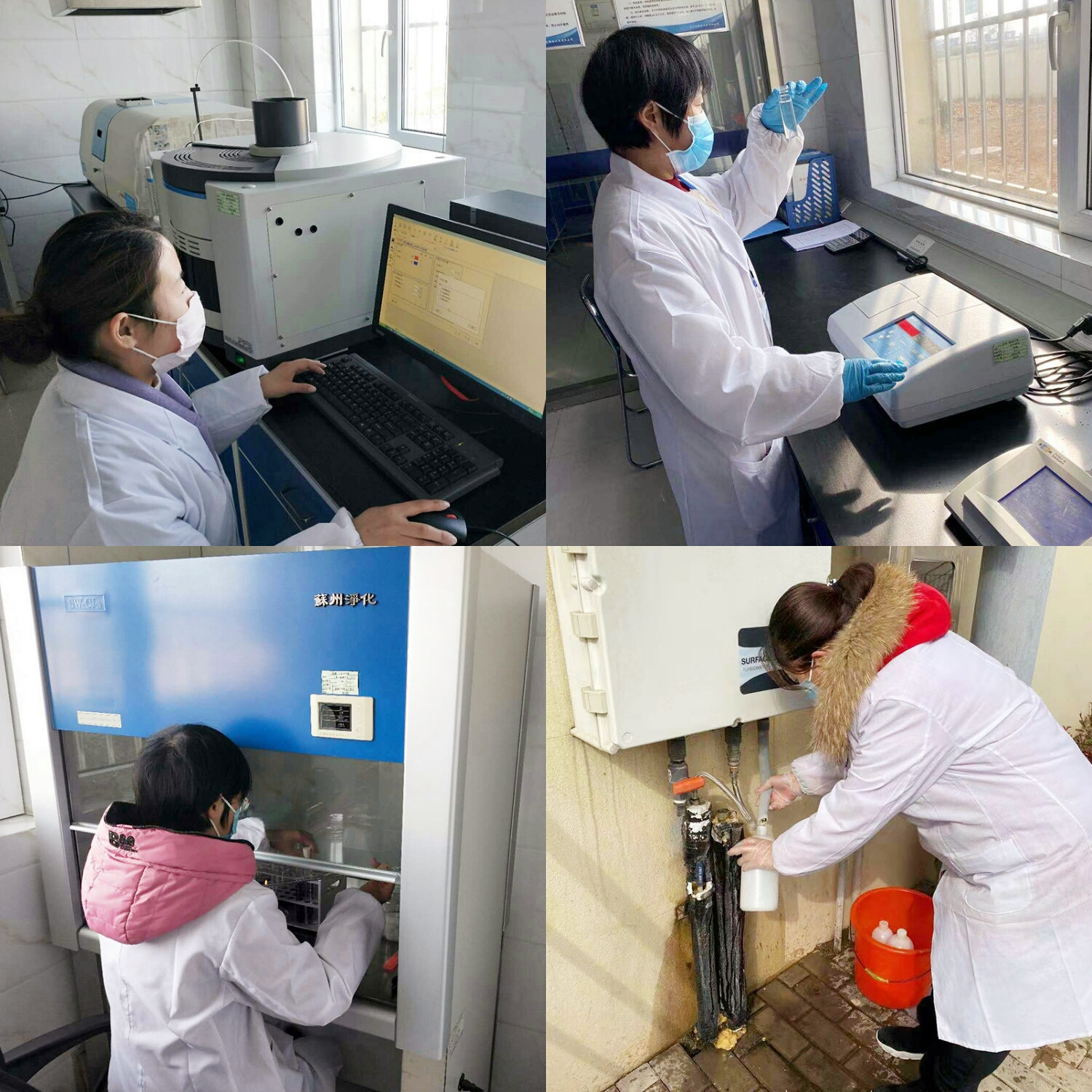 圖2:堅守一線 確保生產(chǎn) 四、加密監(jiān)測、確保水質(zhì) 作為水質(zhì)安全的守護(hù)者,水質(zhì)檢測中心人員一如既往地穿梭在示范區(qū),從原水、過程水、出廠水到管網(wǎng)水加強水質(zhì)監(jiān)測。他們說:“越是關(guān)鍵時刻,越要恪守初心,全力保障好整個示范區(qū)的用水安全!”