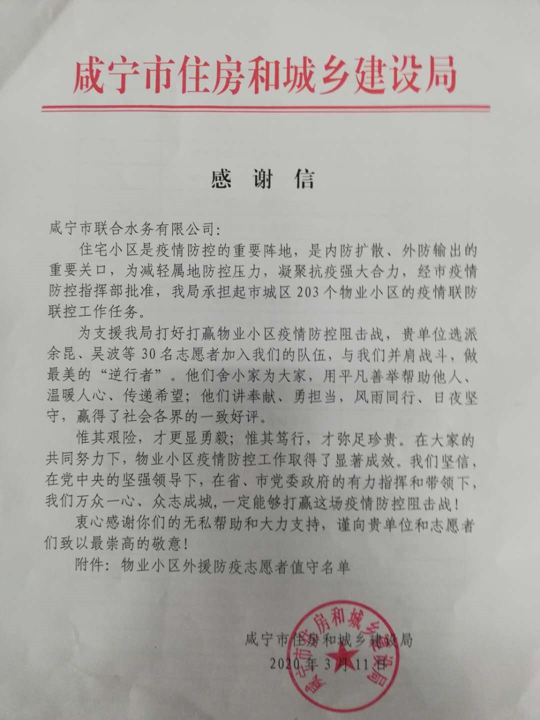 2020庚子鼠年伊始,新世紀(jì)以來在我國傳播速度最快、感染范圍最廣、防控難度最大的新冠肺炎疫情突襲華夏大地,節(jié)日的喜慶氣氛急轉(zhuǎn)直下。水是生命之源、萬物根本,一點(diǎn)一滴總關(guān)情。作為一家有擔(dān)當(dāng)?shù)乃畡?wù)集團(tuán),聯(lián)合水務(wù)與國同心、與民同德,積極參與到全民抗疫的滾滾洪流中,眾志成城,共克時(shí)艱,踐行初心使命,篤定必勝信念:我們定會(huì)迎來春雷乍響時(shí),“疫”去百花開。 迅速響應(yīng),制定應(yīng)急預(yù)案,指導(dǎo)各項(xiàng)工作有效推進(jìn)。 疫情就是命令,民生就是責(zé)任。面對(duì)疫情爆發(fā),聯(lián)合水務(wù)集團(tuán)第一時(shí)間成立了由總裁牽頭的應(yīng)急指揮部,集團(tuán)管委會(huì)立即召開電話、視頻會(huì)議,要求各運(yùn)營公司特殊時(shí)期在確保員工安全的同時(shí)確保安全生產(chǎn),竭盡所能支持地方政府做好疫情防控工作,保障自來水生產(chǎn)供應(yīng)和污水處理服務(wù)。集團(tuán)運(yùn)營管理中心迅速制定《聯(lián)合水務(wù)新冠疫情應(yīng)急預(yù)案》,組織各運(yùn)營公司高層管理人員成立了“抗擊疫情專項(xiàng)指導(dǎo)工作群”,部署、指揮遍布大江南北9省13市的22個(gè)供水、污水運(yùn)營公司,全情全力保民生、促穩(wěn)定。各運(yùn)營公司都在第一時(shí)間相應(yīng)啟動(dòng)《關(guān)于新型冠狀病毒感染的肺炎疫情防控應(yīng)急預(yù)案》,成立了“新冠肺炎疫情防控領(lǐng)導(dǎo)、指揮小組”,組建防控組、醫(yī)療組、保障組等,完善工作方案和保障措施,一線生產(chǎn)和客戶服務(wù)工作安排井然有序,工作、生產(chǎn)場所定時(shí)消毒,工作人員做好個(gè)人防護(hù)和衛(wèi)生工作。供水運(yùn)營公司確保24小時(shí)不間斷提供安全、優(yōu)質(zhì)自來水,滿足所服務(wù)區(qū)域市民生活、醫(yī)療用水和工業(yè)用水需求。污水處理公司不間斷生產(chǎn),達(dá)標(biāo)處理和排放,為所服務(wù)區(qū)域的環(huán)境秩序提供保障。 不計(jì)成本,做好安全防護(hù)與生產(chǎn)運(yùn)營,共戰(zhàn)疫情。 只有做好自身防護(hù),才能確保生產(chǎn)安全。在防疫物資緊缺情況下,聯(lián)合水務(wù)集團(tuán)克服困難,多方籌措,力所能及地為各運(yùn)營公司提供口罩、消毒液等防控物資,同時(shí),特批經(jīng)費(fèi)用于各運(yùn)營公司自行購買防護(hù)口罩、手套、消毒劑等防疫用品,保證員工人身安全,讓他們無后顧之憂,全身心投入工作。在部分員工出行受阻,不能正常上班情況下,公司為他們足額發(fā)放工資,穩(wěn)定人心,同時(shí)不惜額外支付加班費(fèi),組織生產(chǎn)一線員工加班加點(diǎn),確保正常生產(chǎn)。 為保障防疫抗疫,安全供水責(zé)任重大。集團(tuán)所屬宿遷銀控自來水公司、咸寧聯(lián)合水務(wù)公司、三門峽聯(lián)合水務(wù)公司、新絳晉華生態(tài)環(huán)境公司、稷山聯(lián)合水務(wù)公司等供水公司的值班人員沒有絲毫懈怠。他們每隔1小時(shí),就要對(duì)加藥間、沉淀池、過慮池、消毒池、送水泵房等各道工序運(yùn)行情況進(jìn)行巡視,全天候24小時(shí)不間斷,確保發(fā)現(xiàn)問題及時(shí)進(jìn)行處理,保證水廠高質(zhì)量、高標(biāo)準(zhǔn)運(yùn)行。同時(shí),還根據(jù)原水水質(zhì)和水量的變化及時(shí)增(減)藥劑的用量,確保供水水質(zhì)安全達(dá)標(biāo)。受疫情影響,雖然水質(zhì)檢測人員不能全員到崗,但卻絲毫沒有影響到工作的正常進(jìn)展。為了保證疫情期間水質(zhì)達(dá)標(biāo),水質(zhì)檢測中心進(jìn)一步加強(qiáng)了日常的水質(zhì)檢測力度,增加了檢測水質(zhì)的頻率。在水廠每小時(shí)對(duì)工序水質(zhì)進(jìn)行連續(xù)檢測的基礎(chǔ)上,水質(zhì)檢測人員每天對(duì)水源水和出廠水的濁度、余氯、耗氧量、氨氮和微生物等多項(xiàng)指標(biāo)進(jìn)行檢測,確保水源水質(zhì)安全,做到出廠水水質(zhì)達(dá)標(biāo)。同時(shí),對(duì)管網(wǎng)水監(jiān)測點(diǎn)每周采樣檢測一次,最大程度上保證了從源頭到水龍頭的水質(zhì)安全。疫情期間,在聯(lián)合水務(wù)集團(tuán)總部嚴(yán)格要求和大力指導(dǎo)下,各運(yùn)營公司供水水質(zhì)綜合合格率均嚴(yán)格保持以往的100%。 [ 聯(lián)合水務(wù)生產(chǎn)人員認(rèn)真巡檢,確保安全生產(chǎn) ] [ 聯(lián)合水務(wù)水質(zhì)化驗(yàn)員取水樣進(jìn)行加密檢測 ] [ 聯(lián)合水務(wù)生產(chǎn)人員調(diào)度監(jiān)控現(xiàn)場 ] [ 聯(lián)合水務(wù)工作人員進(jìn)行嚴(yán)格的體溫監(jiān)測 ] 疫情期間,污水生產(chǎn)也備受關(guān)注。集團(tuán)所屬桐鄉(xiāng)申和水務(wù)公司、隨州聯(lián)合玉龍公司、瑞昌金達(dá)萊環(huán)保公司、宿遷耿車污水公司、托克托聯(lián)合水務(wù)公司等污水公司也在集團(tuán)總部部署與指導(dǎo)下,積極響應(yīng)國家和地方疫情防控政策,嚴(yán)格落實(shí)好相關(guān)制度,切實(shí)加強(qiáng)設(shè)備管理,增加次氯酸鈉消毒藥劑投加量。每天對(duì)辦公區(qū)域及生產(chǎn)運(yùn)行區(qū)域進(jìn)行定時(shí)消毒維護(hù)檢查,確保工作環(huán)境安全可靠。同時(shí)為工作人員提供口罩、消毒水等保障用品,在公司群中定時