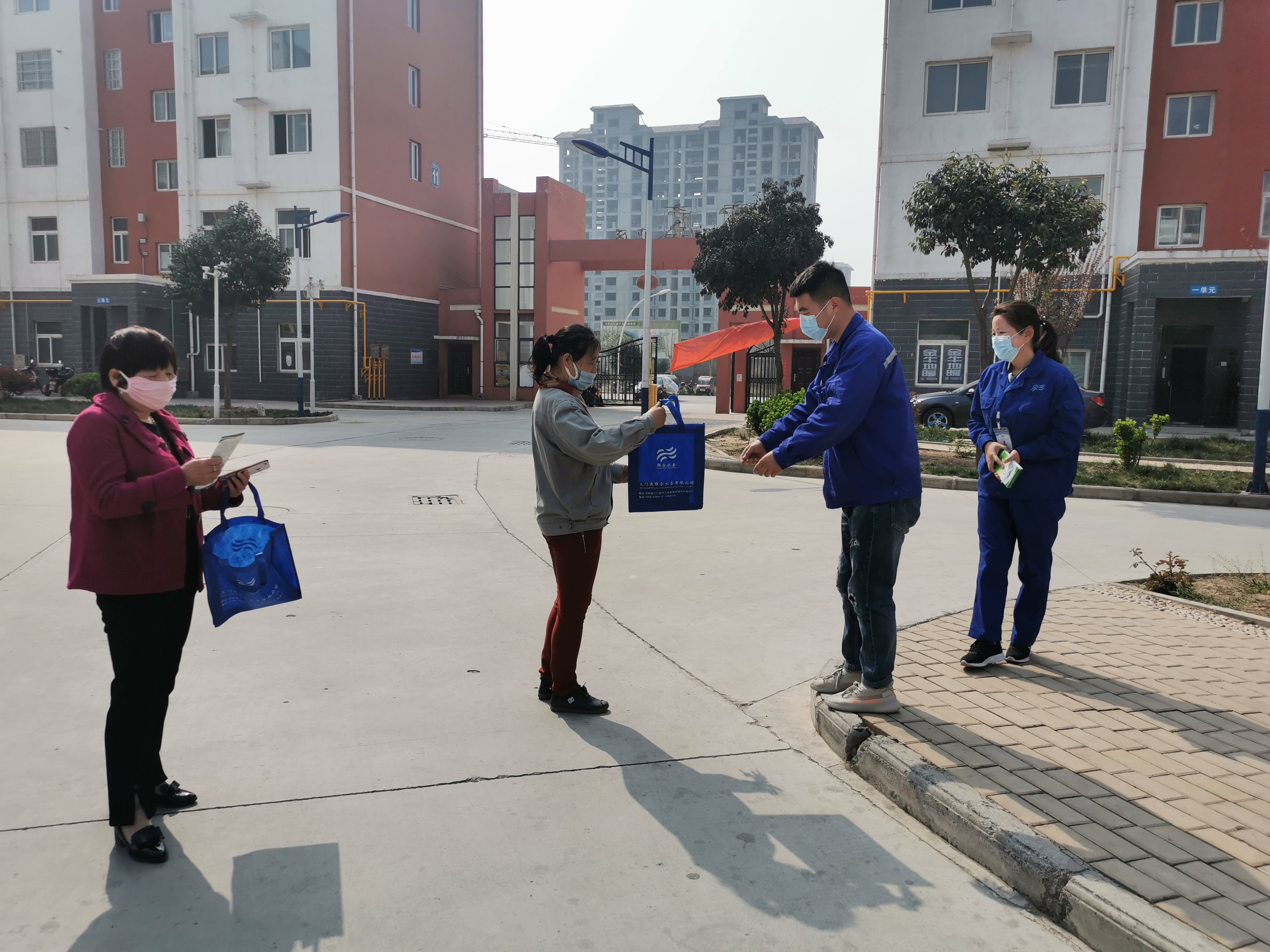 圖3:工作人員給小區(qū)住戶做供水宣傳