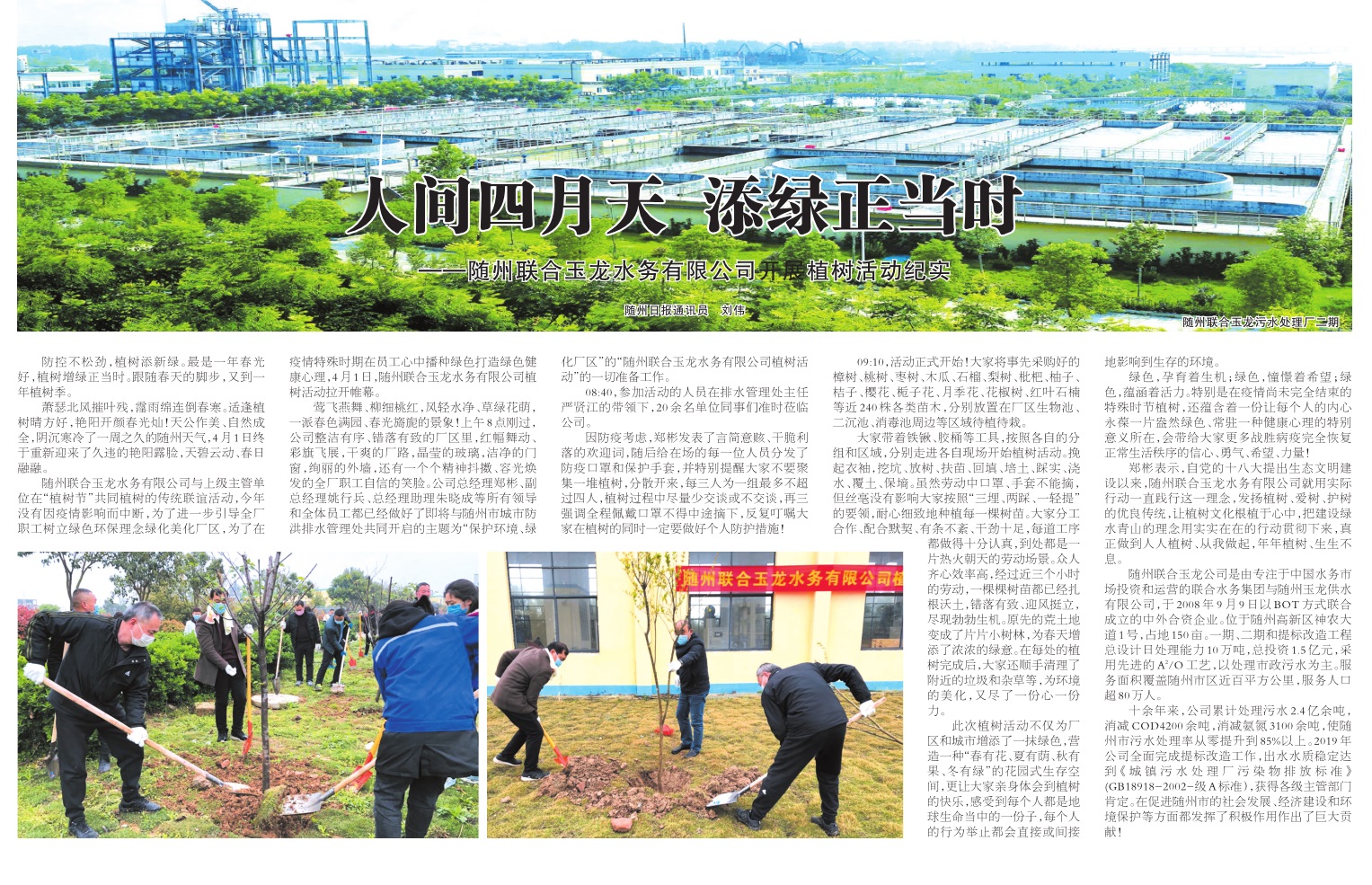 人間四月天 添綠正當時——隨州聯合玉龍水務有限公司開展植樹活動紀實 | ||