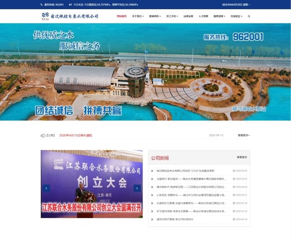 宿遷銀控自來水有限公司網(wǎng)站此次重新改版,在前一版面的基礎(chǔ)上,應(yīng)用了先進(jìn)的網(wǎng)站開發(fā)程序和設(shè)計理念,首頁內(nèi)容生動、豐富,給人以更清新的視覺感受。內(nèi)容包括公司簡介、新聞資訊、員工天地、法律法規(guī)、人才招聘、服務(wù)指南、在線留言、水質(zhì)公示、公示公告等版塊,模塊布局、頁面設(shè)計、網(wǎng)站內(nèi)容等方面得到了更加科學(xué)合理地調(diào)整、優(yōu)化。