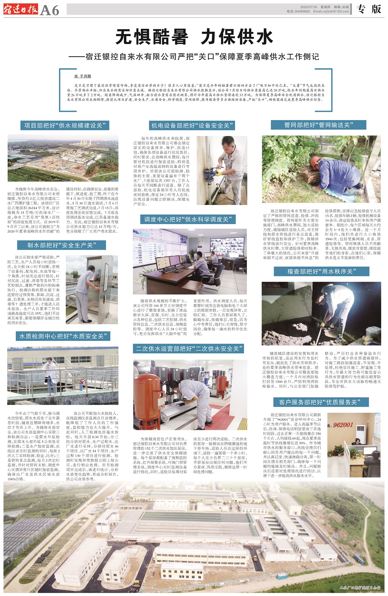 未雨綢繆無(wú)懼酷暑 默默堅(jiān)守力保供水——聯(lián)合水務(wù)宿遷銀控自來(lái)水有限公司嚴(yán)把“關(guān)口”保障夏季高峰供水工作側(cè)記 | ||