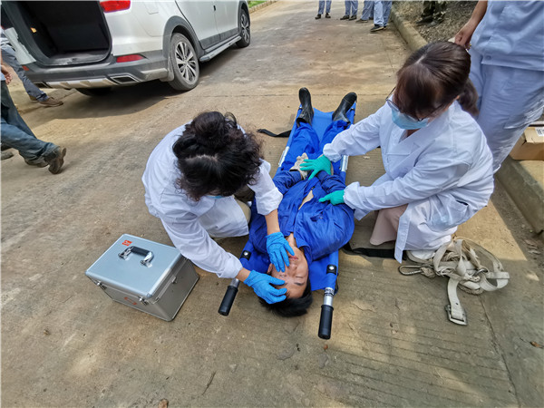 圖2:應急演練現(xiàn)場--醫(yī)護人員查看傷員情況