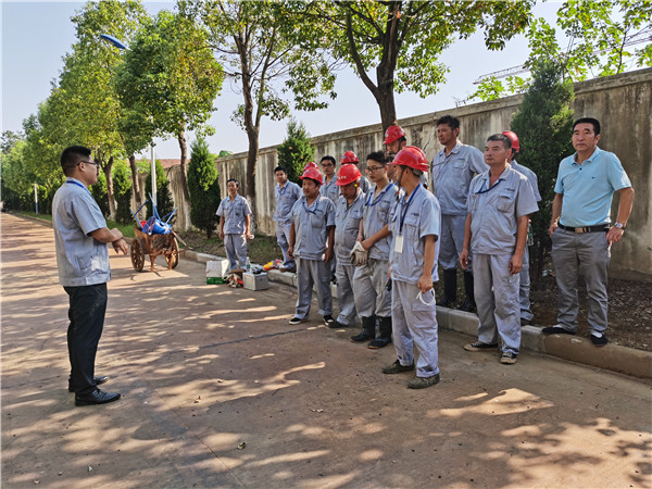 演練前,工藝技術經(jīng)理王臣帶領生產(chǎn)部門全體員工進行了有限空間作業(yè)安全培訓,對事前制定的演練預案進行了詳解及分組討論,并針對7月份進行的一次預演訓練中出現(xiàn)的問題進行了總結和方案的改進,應急小組再次認真確定演練方案后,仔細研究各個應急處理流程,分配模擬任務及安排崗位角色,讓全體參與人員熟知演練過程并牢記于心。