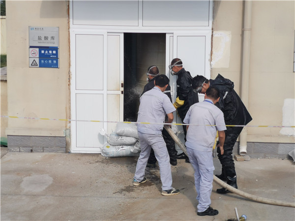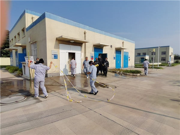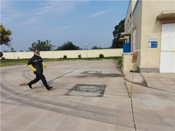 本次演練以“消除安全隱患,筑牢安全防線”為主題,演練開始前,全員學(xué)習(xí)了廠內(nèi);返奶匦、預(yù)防和急救、泄露等處置措施,并現(xiàn)場示范了正確使用與佩戴安全防護(hù)用品的方法。險(xiǎn)情突發(fā),應(yīng)急指揮部立即啟動應(yīng)急預(yù)案,各小組快速進(jìn)入應(yīng)急部署,穿戴防護(hù)用品進(jìn)行現(xiàn)場搶險(xiǎn)救援,工作人員撤離至安全區(qū)域。經(jīng)過搶險(xiǎn),泄露點(diǎn)成功堵漏,鹽酸泄漏得到控制,未對環(huán)境和生產(chǎn)造成影響。