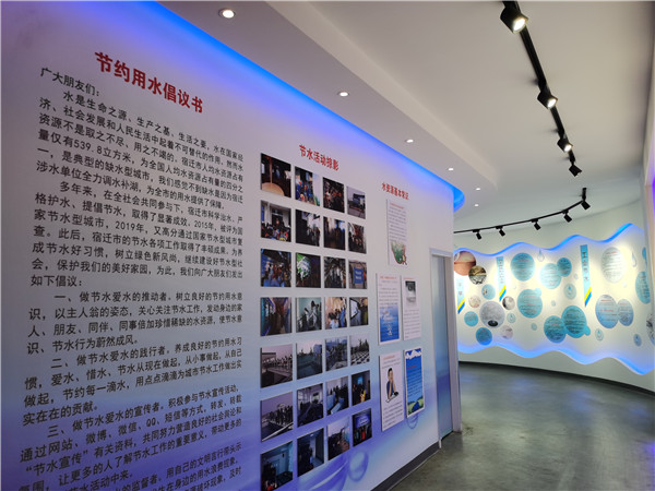 座落于聯(lián)合水務(wù)集團宿遷供水公司第二水廠院內(nèi)的宿遷市水文化展示館,于2012年6月正式落成,是由聯(lián)合水務(wù)集團投資380多萬元,全資打造的一座純公益性科普教育基地,占地面積500平方米,是蘇北地區(qū)最具代表性的以水文化為主題的展示館,先后獲批“江蘇省節(jié)水教育基地”、“江蘇省科普教育基地”,對于宿遷市被正式命名為“國家節(jié)水型城市”起到了重要的推動作用。宿遷市水文化展示館主脈絡(luò)從水的根源出發(fā),追尋城市發(fā)展軌跡展現(xiàn)自來水事業(yè)沿革,以“為有源頭活水來”為主題,分為“論水”、“治水”、“節(jié)水”三大主題展區(qū),采用“聲、光、電、影”等多媒體展示手段,對水文化進行宣傳,具有鮮明的科普性、觀賞性,更具有節(jié)水的宣傳教育性,自對外開放至今,已累計接待各級政府領(lǐng)導(dǎo)、全國各地業(yè)內(nèi)兄弟單位參觀考察及中小學(xué)生、社會團體參觀學(xué)習等6000余人次,成為宿遷市獨具魅力的“節(jié)水教育名片”。