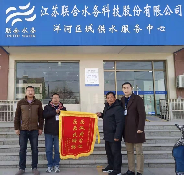 近日,平安社區(qū)領(lǐng)導以及物業(yè)公司負責人將一面印有“為政府分憂,為居民解憂”的錦旗送至宿遷供水公司洋河區(qū)域供水服務中心,對洋河服務中心在寒潮期間的付出表示由衷地感謝,公司區(qū)域供水總監(jiān)楊坤、中心主任宋衛(wèi)偉代表洋河中心接受錦旗。