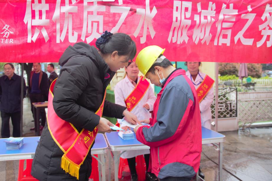 為了讓廣大用戶進一步了解咸寧聯(lián)合水務(wù)的供水服務(wù),在3月15日消費者權(quán)益日當天,咸寧聯(lián)合水務(wù)有限公司組織水質(zhì)檢測中心、客服部、水表檢定中心等多個部門,在同惠國際廣場參加了由咸寧市市場監(jiān)督管理局、咸寧消費者委員會主辦的“3·15國際消費者權(quán)益日”紀念活動。咸寧聯(lián)合水務(wù)有限公司客戶服務(wù)副總經(jīng)理郁莉出席本次活動。