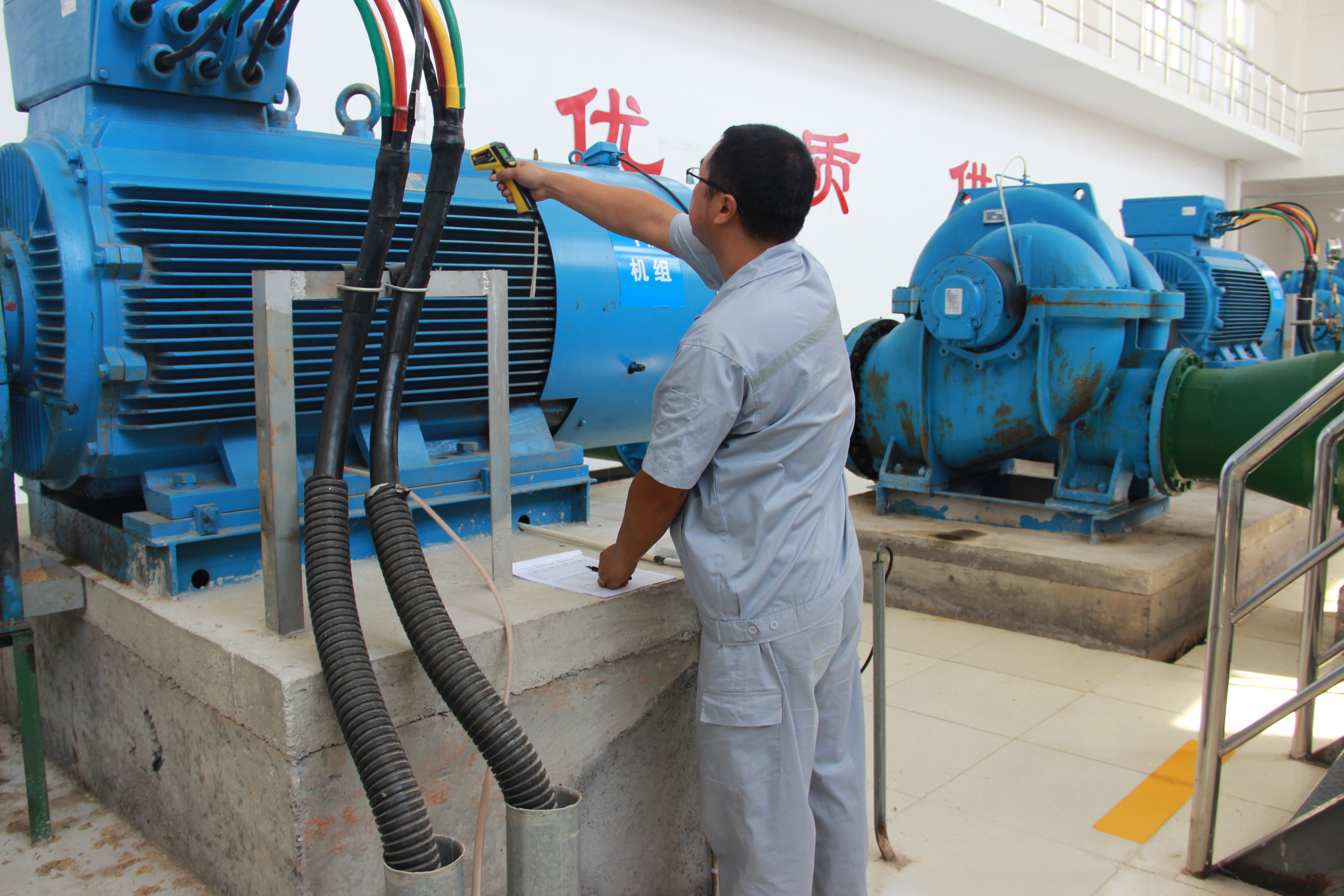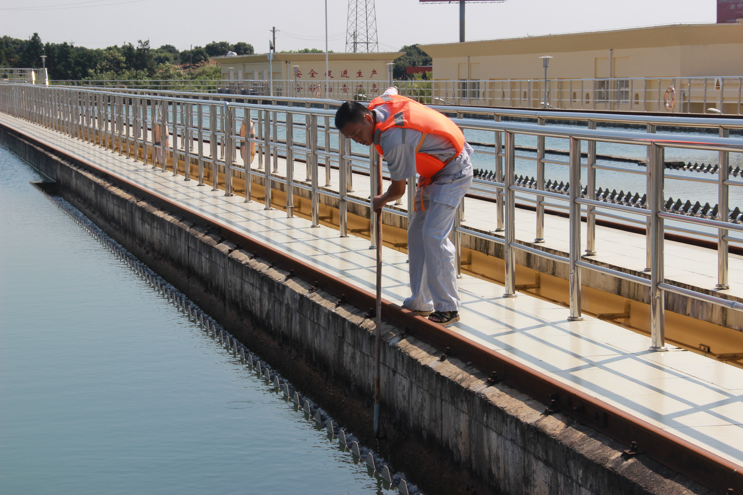 圖:柯偉進(jìn)行清苔工作 夏季是用水高峰期,為保障城區(qū)供水無礙,水廠的泵站早已進(jìn)入超負(fù)荷運(yùn)轉(zhuǎn)模式。確保供水機(jī)組正常運(yùn)轉(zhuǎn)是夏季保供水工作中最關(guān)鍵的環(huán)節(jié),因此每隔兩小時(shí)就需對供水機(jī)組設(shè)備進(jìn)行巡視檢查,全天24小時(shí)無休。走進(jìn)泵站,感覺仿佛置身于蒸拿房一般。雖然在室內(nèi),但由于機(jī)組大設(shè)備散發(fā)出的龐大熱量,即使有排風(fēng)扇等設(shè)施散溫,但泵站內(nèi)的溫度仍然比室外高出一截。此時(shí),陳鋒正在進(jìn)行日常巡檢工作,決然不懼泵站內(nèi)的高溫,仔細(xì)的巡查著每一臺(tái)設(shè)備。