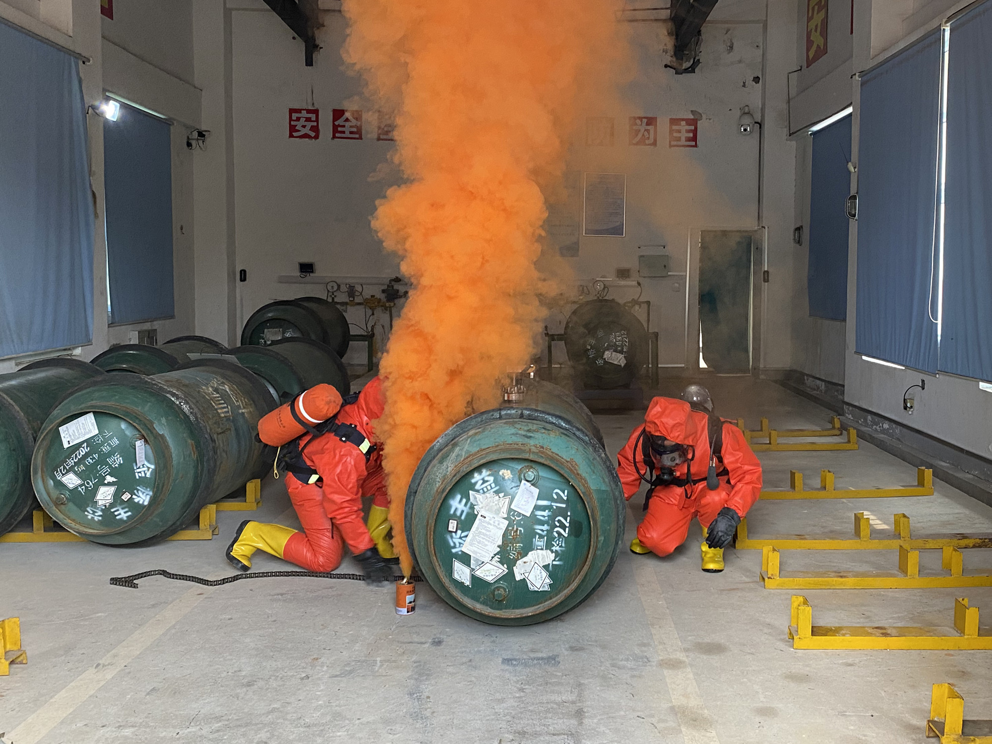 圖:現(xiàn)場處置組對鋼瓶進行堵漏