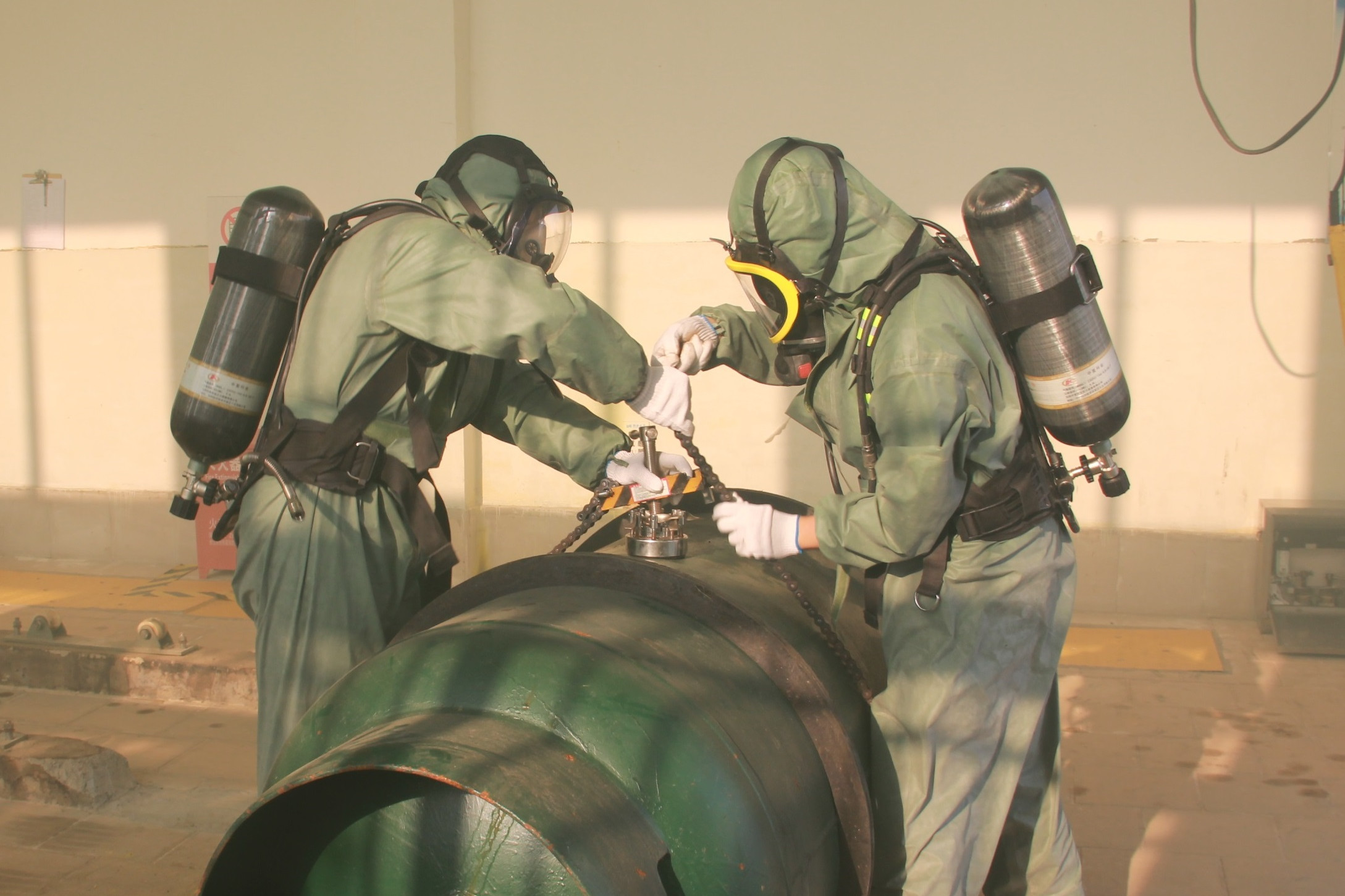 安全生產(chǎn)無小事,安全責(zé)任大于天。為深入強(qiáng)化供水生產(chǎn)安全意識(shí),不斷提升生產(chǎn)廠站安全指數(shù),加強(qiáng)員工隊(duì)伍應(yīng)對(duì)突發(fā)生產(chǎn)安全事故處置和救援能力,提高搶險(xiǎn)效率,11月18日下午,咸寧聯(lián)合水務(wù)有限公司生產(chǎn)部門在王英水廠開展生產(chǎn)安全事故應(yīng)急救援預(yù)案演練。聯(lián)合水務(wù)咸寧區(qū)域總經(jīng)理陶瑛臨場(chǎng)指揮,公司全體管委會(huì)成員及中層管理職工進(jìn)行現(xiàn)場(chǎng)觀摩。 唯安全之道,篤行之。安全是企業(yè)生產(chǎn)之根本,是企業(yè)穩(wěn)步發(fā)展之核心要素。唯有樹牢安全發(fā)展理念,充分認(rèn)識(shí)到安全生產(chǎn)工作的重要性,將安全生產(chǎn)工作落到實(shí)處,壓實(shí)防控責(zé)任,時(shí)刻保持如履薄冰的警惕狀態(tài),才能筑牢安全生產(chǎn)防線。唯有如此,企業(yè)才能在波濤洶涌的大海中順利航行。 在演練的第一個(gè)環(huán)節(jié),工作人員事先用發(fā)煙道具模擬氯庫的液氯鋼瓶發(fā)生氯氣泄漏場(chǎng)景。氯氣泄漏擴(kuò)散觸發(fā)自動(dòng)報(bào)警器,廠區(qū)警鈴一響,值班室人員立即佩戴導(dǎo)管式防毒面具,打開庫房進(jìn)入庫房觀察情況,確認(rèn)為氯氣泄漏后,立即向部門經(jīng)理施志雄報(bào)告氯庫發(fā)生泄漏事故。施經(jīng)理當(dāng)即啟動(dòng)《生產(chǎn)安全事故應(yīng)急預(yù)案》,安排事故應(yīng)急小組立即前往現(xiàn)場(chǎng)進(jìn)行搶險(xiǎn)。從警鈴響起至漏濾事故清除,全過程總用時(shí)為5分06秒。發(fā)生突發(fā)事故,早一秒處置,就能早一秒轉(zhuǎn)危為安。此次液氯泄漏事故演練較好的反映了廠區(qū)工作人員的應(yīng)急處置能力,廠區(qū)工作人員表示,將繼續(xù)強(qiáng)化應(yīng)急處置能力,以便在日后真正發(fā)生事故時(shí)能在第一時(shí)間消除險(xiǎn)情。