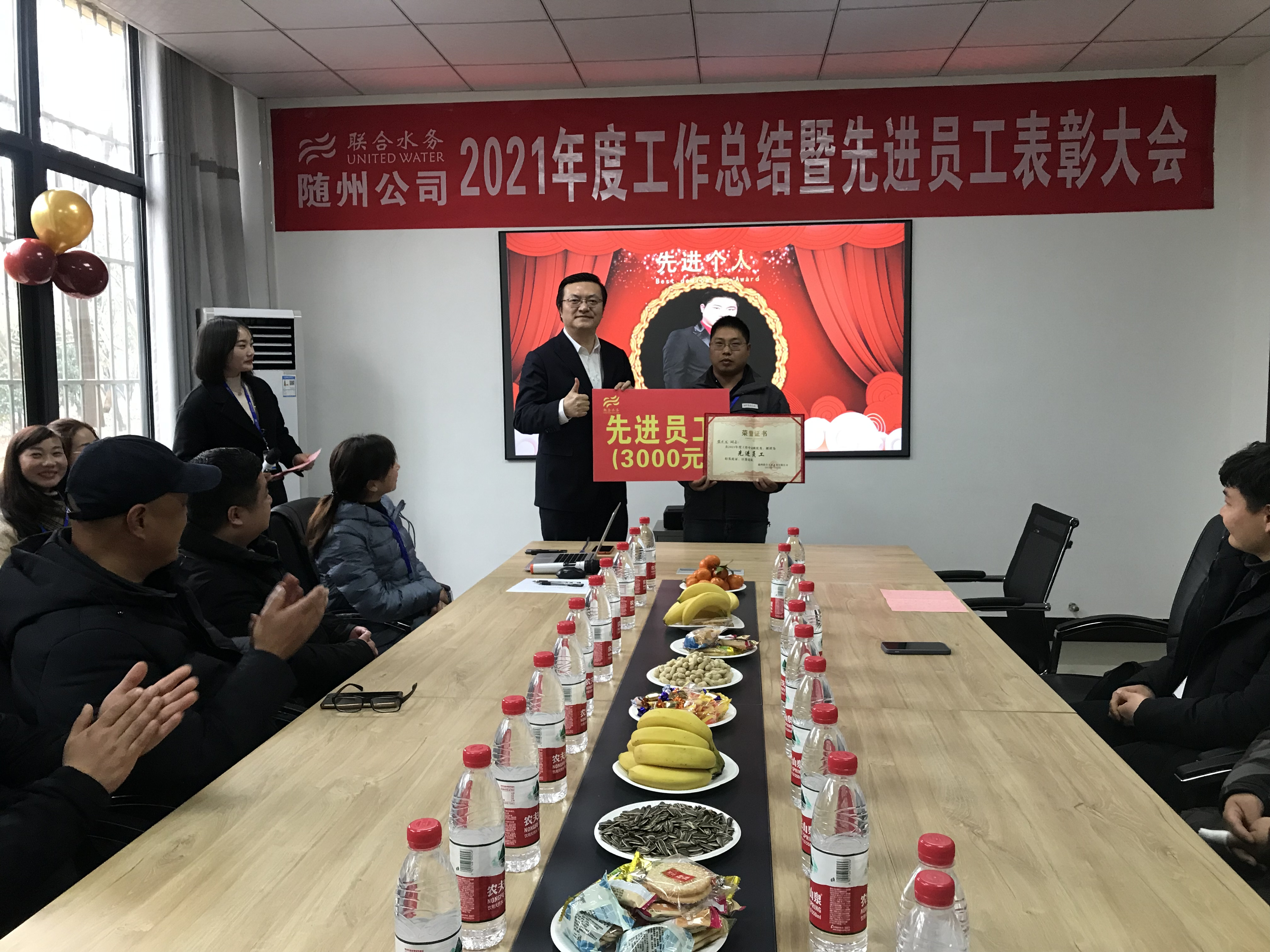 1月22日下午,隨州聯(lián)合玉龍水務(wù)有限公司召開了2021年度工作總結(jié)暨先進員工表彰大會,聯(lián)合水務(wù)常務(wù)副總裁劉猛出席會議,隨州公司總經(jīng)理鄭彬、總經(jīng)理助理朱曉成及全體職工參加會議。