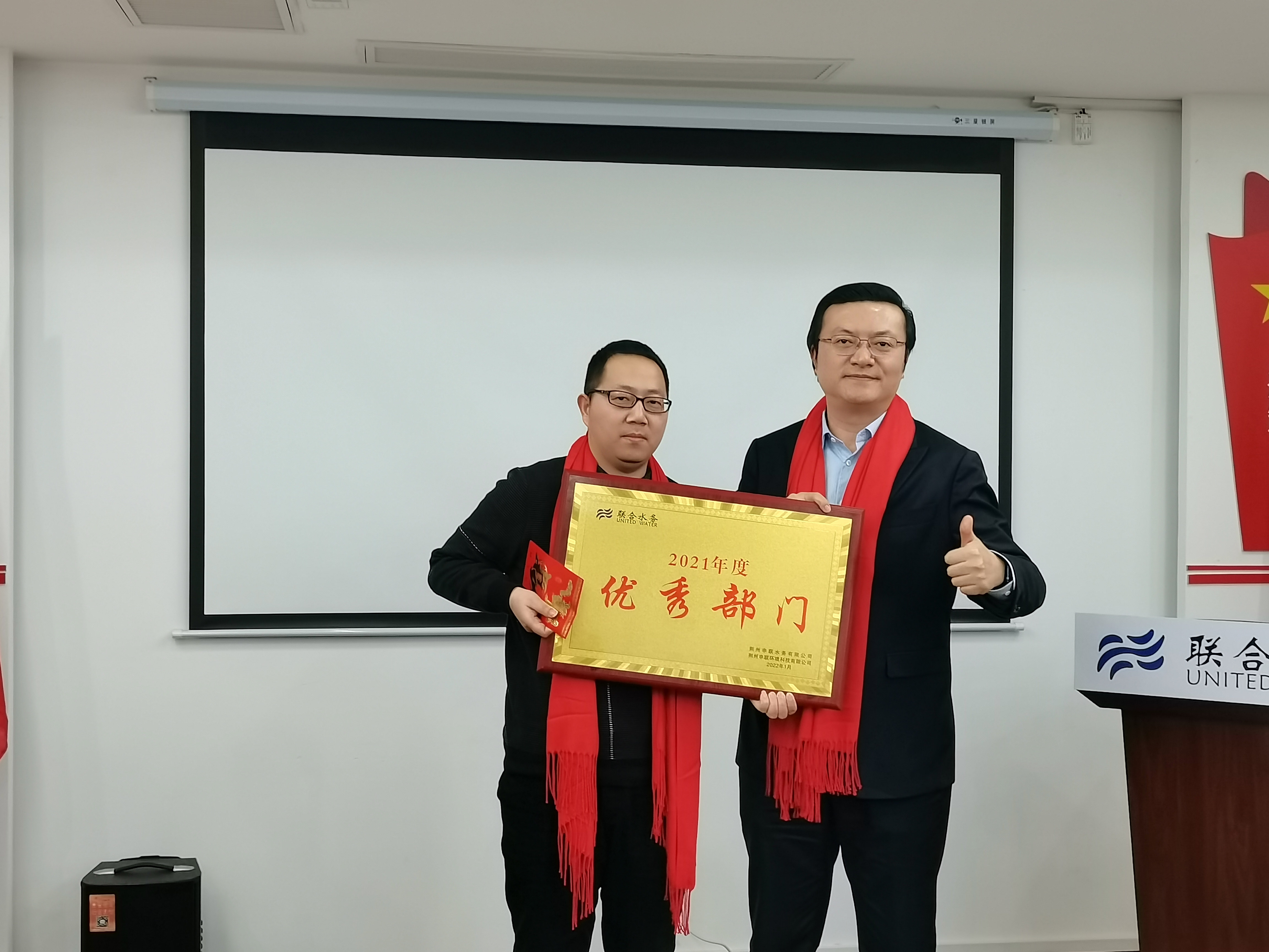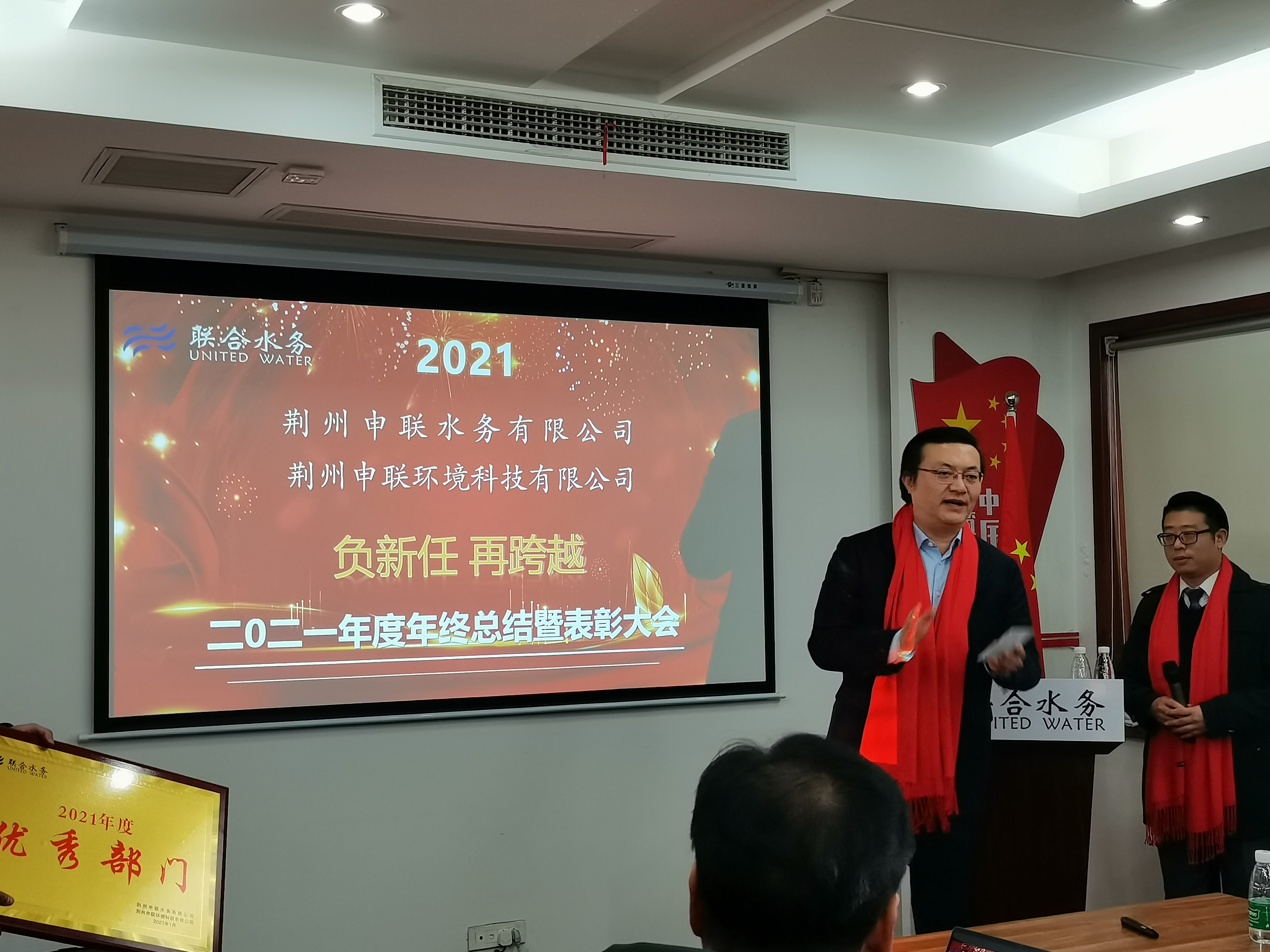 圖:聯(lián)合水務(wù)常務(wù)副總裁劉猛為優(yōu)秀部門(mén)頒獎(jiǎng) 會(huì)議最后,江蘇聯(lián)合水務(wù)科技股份有限公司常務(wù)副總裁劉猛作重要講話。首先,劉總代表總部對(duì)荊州公司2021年取得的驕人業(yè)績(jī)表示祝賀,對(duì)荊州公司全體員工所付出的努力表示衷心的感謝。隨后,劉總用三點(diǎn)感受綜合表述荊州公司取得的成績(jī)、面臨的挑戰(zhàn)以及發(fā)展的方向。一是擁抱變化,荊州公司全體員工以更加積極飽滿的熱情擁抱變化,以更加敬業(yè)的精神對(duì)待工作,加上管理團(tuán)隊(duì)更加規(guī)范、精細(xì)的管理,才取得了優(yōu)異的成績(jī);二是挑戰(zhàn)自我,雖然面臨設(shè)備老舊、出水達(dá)標(biāo)、業(yè)務(wù)拓展、新的業(yè)績(jī)考核指標(biāo)等多重挑戰(zhàn),但荊州公司各部門(mén)團(tuán)結(jié)一心,求大同存小異,朝著完成下達(dá)的目標(biāo)不懈努力;三是創(chuàng)造價(jià)值,一方面在提標(biāo)升級(jí)改造項(xiàng)目竣工前,在產(chǎn)能、工藝雙受限的基礎(chǔ)上,盡量接納更多的污水,為荊州市節(jié)能降碳貢獻(xiàn)力量,為社會(huì)創(chuàng)造價(jià)值;另一方面,以“我不負(fù)公司,公司定不負(fù)我”的積極心態(tài)繼續(xù)開(kāi)源節(jié)流,努力打破污水處理廠圍墻邊界所帶來(lái)的限制,全方位拓展新業(yè)務(wù),勇于開(kāi)拓、勇于創(chuàng)新,為公司創(chuàng)造價(jià)值。最后,劉總希望大家在虎年虎虎生風(fēng),為荊州公司、為聯(lián)合水務(wù)創(chuàng)造更多的價(jià)值、創(chuàng)造更好的業(yè)績(jī)。