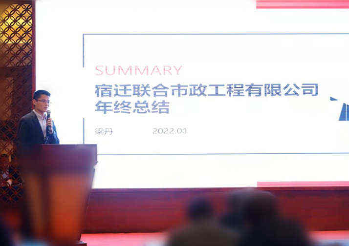 宿遷聯(lián)合市政工程有限公司總經(jīng)理梁丹對2021年度工程公司工作進(jìn)行了匯報,通過柱形圖對比展示了2021年的工作成果,各項(xiàng)指標(biāo)穩(wěn)步增漲,實(shí)現(xiàn)了一年業(yè)績的高質(zhì)量發(fā)展。在這一年中,公司管理向更精更細(xì)發(fā)展,不斷提升,打出安全文明施工、泵組汽蝕控制、標(biāo)準(zhǔn)化泵房推廣、人才培養(yǎng)等組合拳。粱總帶領(lǐng)團(tuán)隊(duì)制定了新的一年經(jīng)營目標(biāo),明確新一年的經(jīng)營策略,在新的一年中加大人才培養(yǎng)力度,增強(qiáng)公司組織建設(shè)能力,為公司進(jìn)一步發(fā)展增添助力。