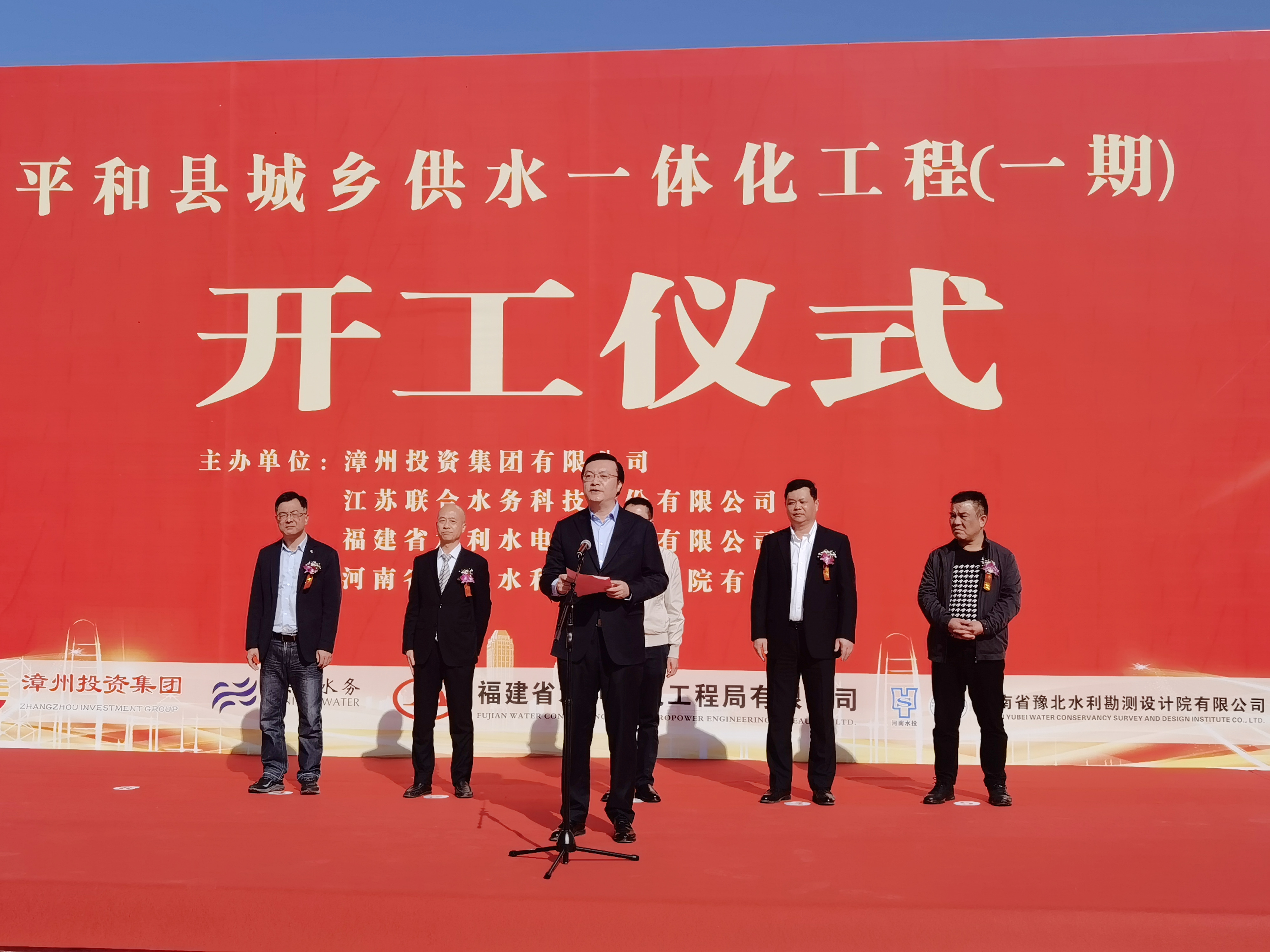 3月9日,由江蘇聯(lián)合水務(wù)科技股份有限公司作為牽頭方,福建省水利水電工程局有限公司、河南省豫北水利勘測設(shè)計(jì)院有限公司作為成員單位的聯(lián)合體中標(biāo)的項(xiàng)目——福建省漳州市平和縣城鄉(xiāng)供水一體化工程(一期)(EPC+O)開工儀式在漳州市平和縣隆重舉行。平和縣人民政府縣長黃永健、副縣長吳朝東、漳州投資集團(tuán)有限公司董事長莊偉廉、江蘇聯(lián)合水務(wù)科技股份有限公司常務(wù)副總裁劉猛等出席本次開工儀式。開工儀式由副縣長吳朝東主持。
