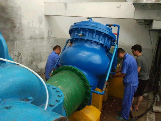 入夏以來,氣溫不斷升高,供水量也節(jié)節(jié)攀升。尤其是7月22日以來,氣溫連續(xù)突破35℃的高溫線,供水量更是達(dá)到了歷史最高值,隨之而來的是因高溫和高峰供水造成的各類生產(chǎn)問題,在短短一周之內(nèi),生產(chǎn)部門便向機(jī)電設(shè)備部發(fā)送大小故障維修申請(qǐng)十余起。 面對(duì)高溫挑戰(zhàn),宿遷公司制水部、機(jī)電部、管網(wǎng)部等部門密切配合,及時(shí)搶修保障供水安全。7月22日凌晨,由于電力故障,造成駱馬湖泵站散熱風(fēng)機(jī)燒壞,泵房內(nèi)電機(jī)溫度不斷升高。機(jī)電部維修值班人員在接到通知后一邊安排人員前往現(xiàn)場(chǎng)進(jìn)行故障排查,另一路人員則前往運(yùn)河備用泵站將其內(nèi)部的散熱風(fēng)機(jī)拆除兩臺(tái)帶往駱馬湖泵站進(jìn)行安裝,以解應(yīng)急之需,直至早上8點(diǎn)左右才完成散熱風(fēng)機(jī)的搶修任務(wù)。 9點(diǎn)05分左右,駱馬湖一號(hào)機(jī)組出水端伸縮器出現(xiàn)漏水狀況,且水量較大、水壓高,需要停機(jī)進(jìn)行檢修。即使關(guān)閉出水閥門,仍有漏水現(xiàn)象,只有切換備用水源才能予以維修。經(jīng)請(qǐng)示,上午10點(diǎn)10分左右完成了水源的切換工作,機(jī)電部門人員便開始對(duì)伸縮器和閥門進(jìn)行拆解維修。此時(shí)正值高溫時(shí)段,泵站內(nèi)由于電機(jī)工作放熱,溫度更是逼近39攝氏度,在連續(xù)奮戰(zhàn)了7個(gè)小時(shí)之后,終于將損壞的伸縮器更換完畢,完成了閥門的修復(fù)工作。此時(shí)大家都已經(jīng)體力透支,短暫的休息之后,緊接著又趕往運(yùn)河泵站開關(guān)閥門和機(jī)組,將水源切換回來,晚上8點(diǎn),整場(chǎng)維修終于結(jié)束。 7月29日,駱馬湖泵站至一水廠原水DN1200的原水管道又突發(fā)了漏水事故,由于其是玻璃鋼管,如果不及時(shí)進(jìn)行維修,破口會(huì)將不斷的擴(kuò)大,影響全市的安全供水。管網(wǎng)部、機(jī)電部、制水部等部門緊密合作,奮戰(zhàn)搶修。由于玻璃鋼管道的特殊性,必須進(jìn)行停水維修,需要啟用運(yùn)河備用泵站,但由于上游來水,運(yùn)河備用水源水質(zhì)惡化,耗氧量超過6.0mg/L,為保障用出廠水水質(zhì),只能采取投加應(yīng)急藥劑的處理措施。在趙總的協(xié)調(diào)下,制水部、水檢公司、機(jī)電部門全力開動(dòng)起來,冒著高溫開展各自工作。水檢中心取水進(jìn)行投加實(shí)驗(yàn),確定應(yīng)急投加量,制水部負(fù)責(zé)調(diào)整人員到運(yùn)河泵站做準(zhǔn)備工作,機(jī)電部人員到運(yùn)河泵站進(jìn)行電器設(shè)備檢查,對(duì)投加設(shè)備進(jìn)行調(diào)試。為保障30日能夠順利開展工作,29日下午,先期開啟運(yùn)河一臺(tái)機(jī)組進(jìn)行了投加實(shí)驗(yàn),并取得了成功。 30日下午2點(diǎn),各部門人員便齊聚運(yùn)河泵站各自展開了工作。下午2點(diǎn)40分,順利將運(yùn)河泵站機(jī)組開啟供水,原水管道開啟排放閥門進(jìn)行放水修理。3點(diǎn)10分左右,正當(dāng)大家準(zhǔn)備離開的時(shí)候,運(yùn)河泵站3號(hào)機(jī)組突發(fā)異響,經(jīng)初步判斷應(yīng)該是葉輪被卡,需要拆卸修理。于是緊急切換1號(hào)機(jī)組供水,機(jī)電部門人員又冒著高溫開始了搶修工作,直至夜間22點(diǎn)駱馬湖恢復(fù)供水。